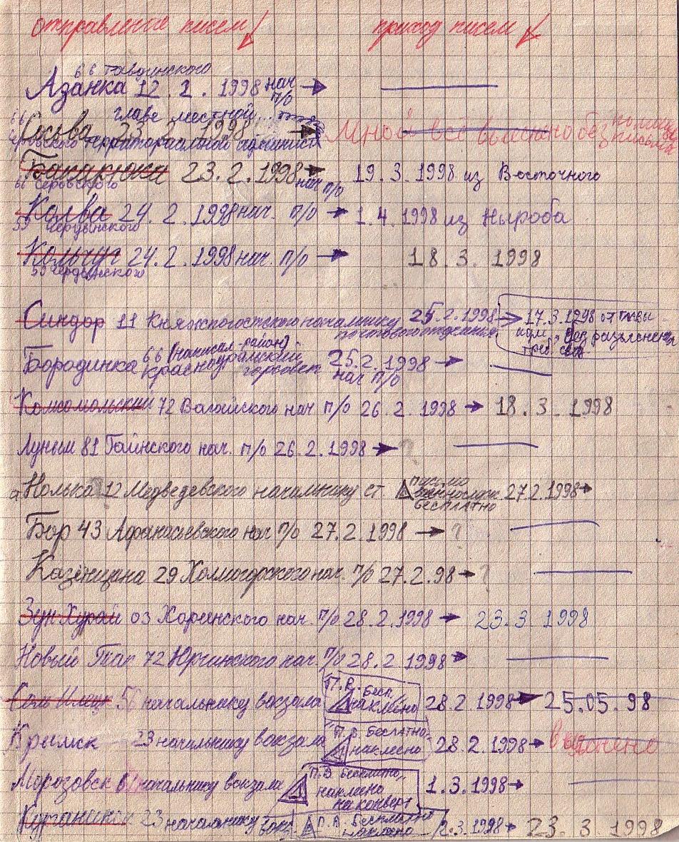 Письма адресовались начальникам станций, начальникам вокзалов, начальникам узкоколейных железных дорог. В тех случаях, когда не было уверенности в наличии на данной дороге (станции) людей с такой должностью — я адресовал письмо начальнику отделения связи того посёлка, в котором находилась интересовавшая станция, или главе администрации этого посёлка. Отправляя письмо-запрос, я всегда вкладывал конверт с обратным адресом.