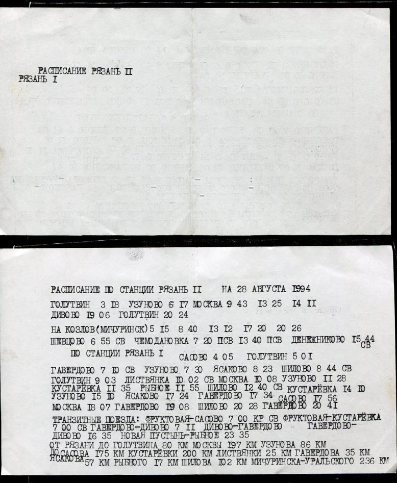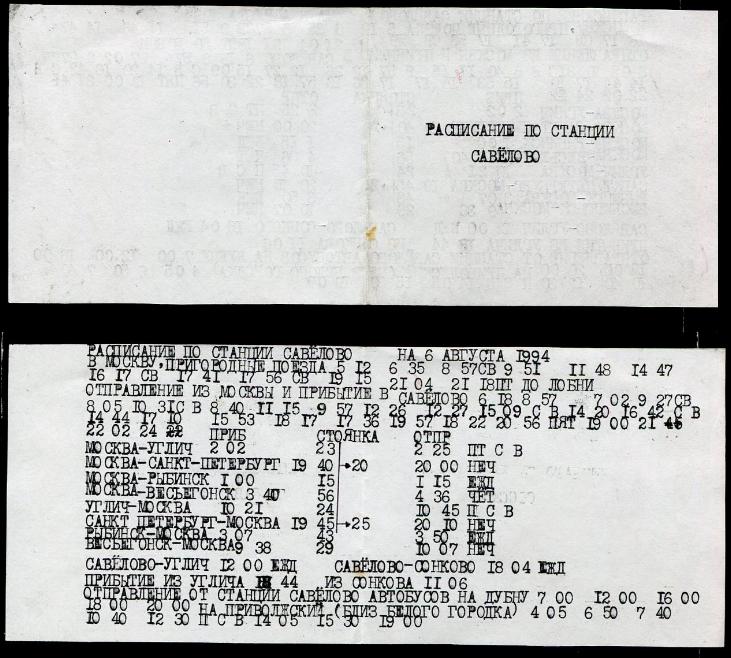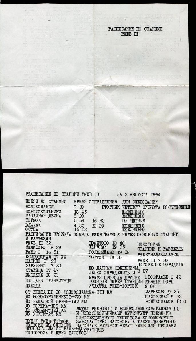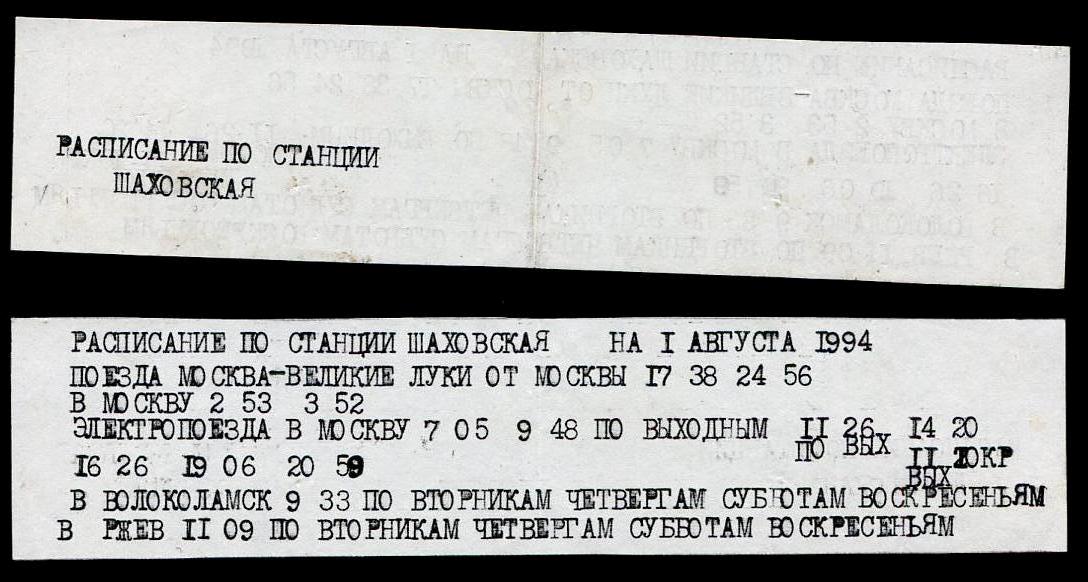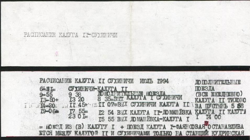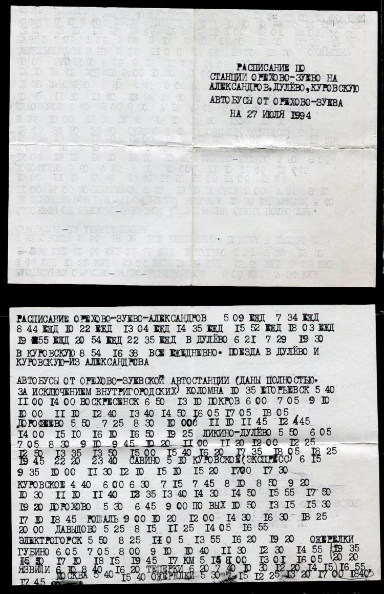 В 1994 году началось активное переписывание расписаний с последующей печатью их на пишущей машинке в особо оформленном виде. Было напечатано свыше ста отдельных расписаний. Все они печатались в двух экземплярах, с помощью копировальной бумаги.