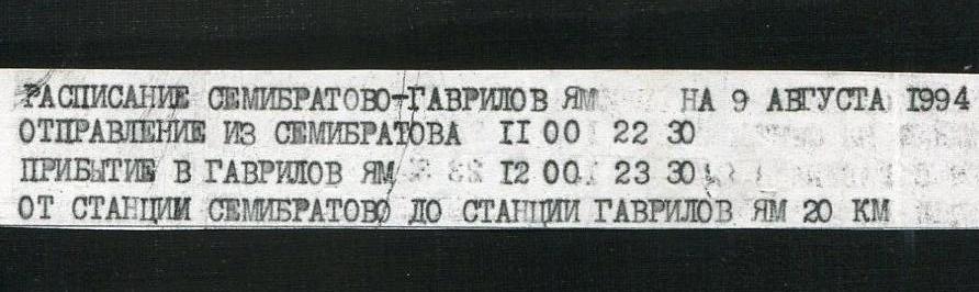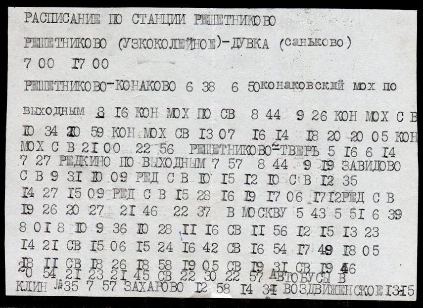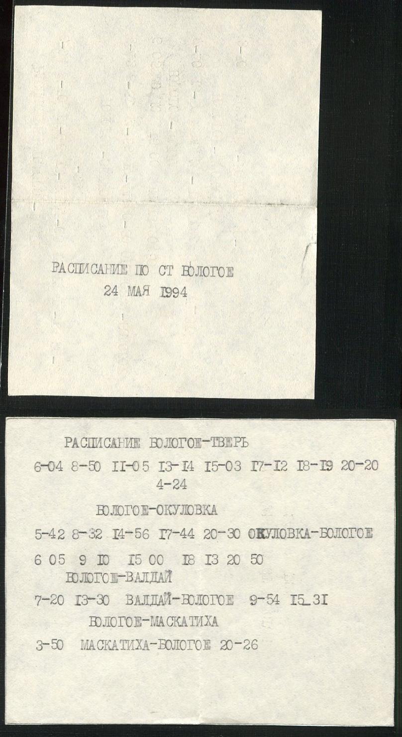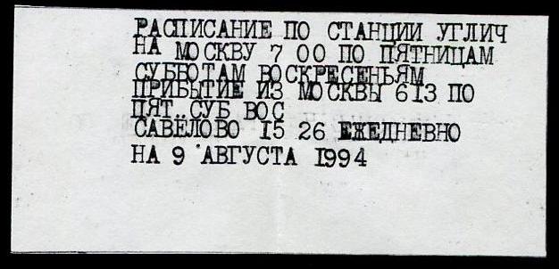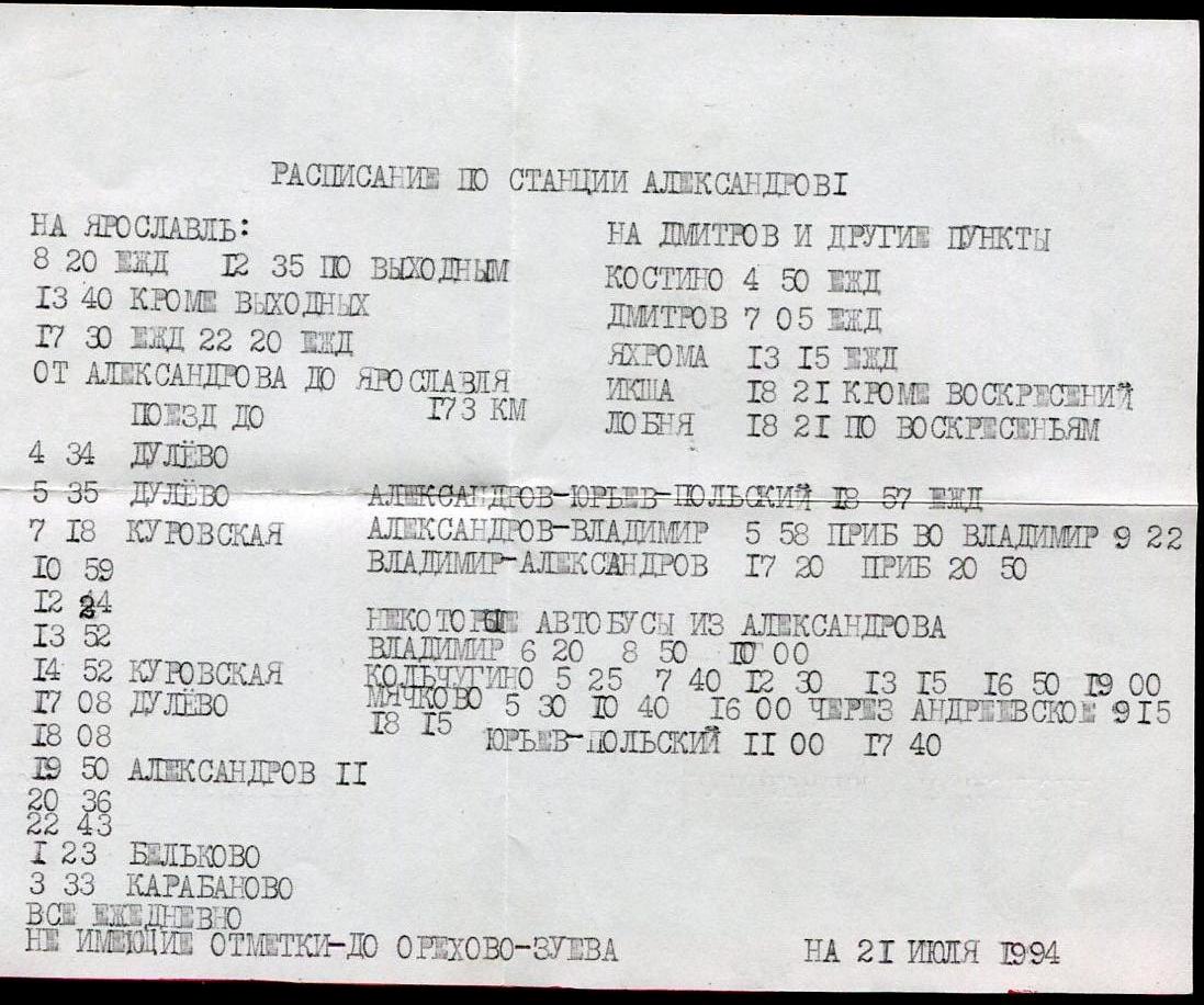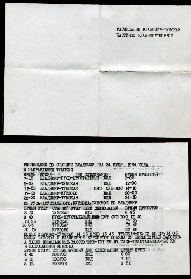 В 1994 году началось активное переписывание расписаний с последующей печатью их на пишущей машинке в особо оформленном виде. Было напечатано свыше ста отдельных расписаний. Все они печатались в двух экземплярах, с помощью копировальной бумаги.