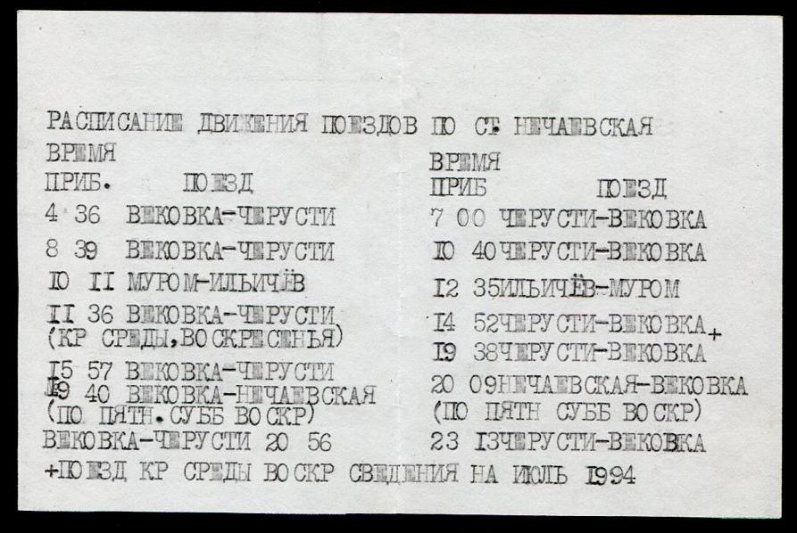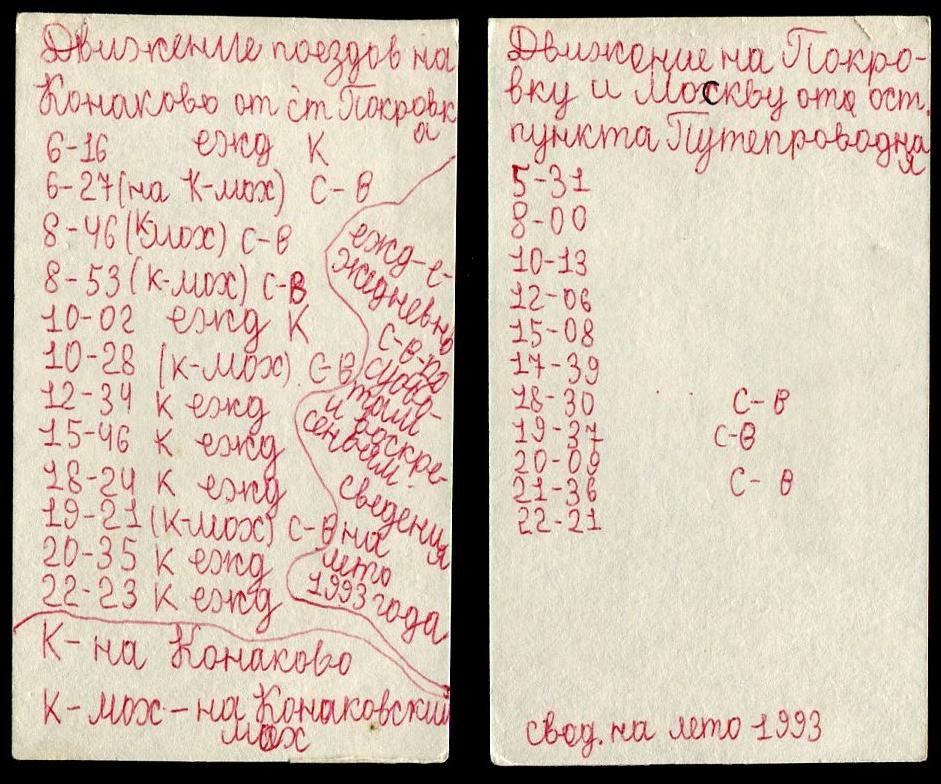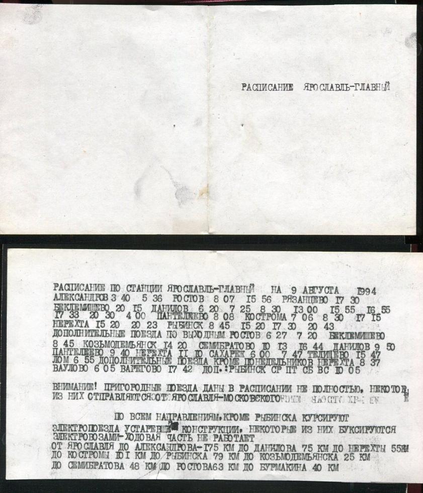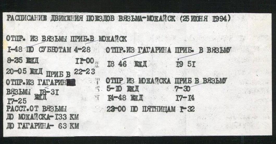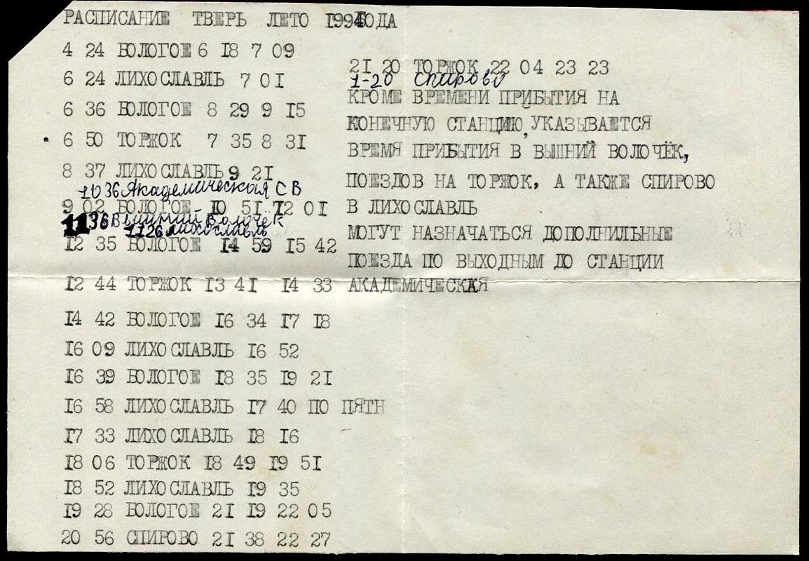 В 1993 году я впервые оформил в аккуратном, «долгосрочном» виде переписанное расписание движения пригородных поездов.