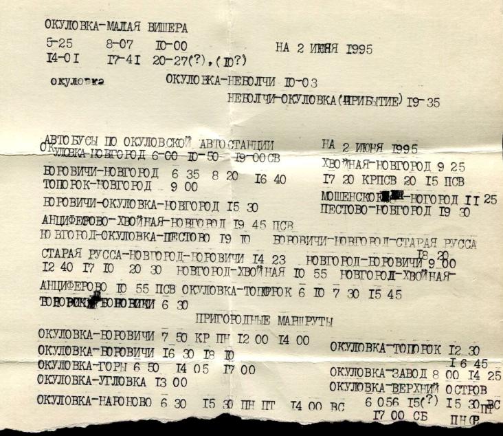 Окуловка (кроме поездов до Бологое), 1995 год.