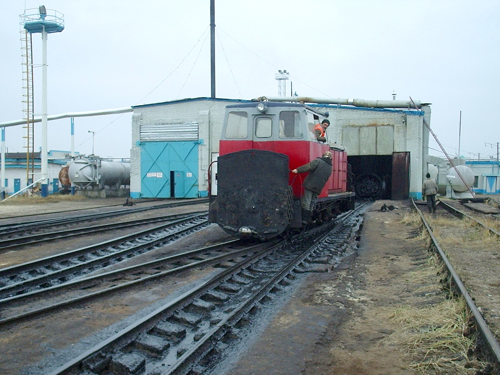 Тепловоз ТГМ40-0919 (широкая колея) на Новомосковском шпалопропиточном заводе.