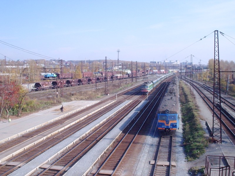 Станция Свердловск-Сортировочный. Вид с переходного моста в восточном направлении, в сторону станции Свердловск-Пассажирский.