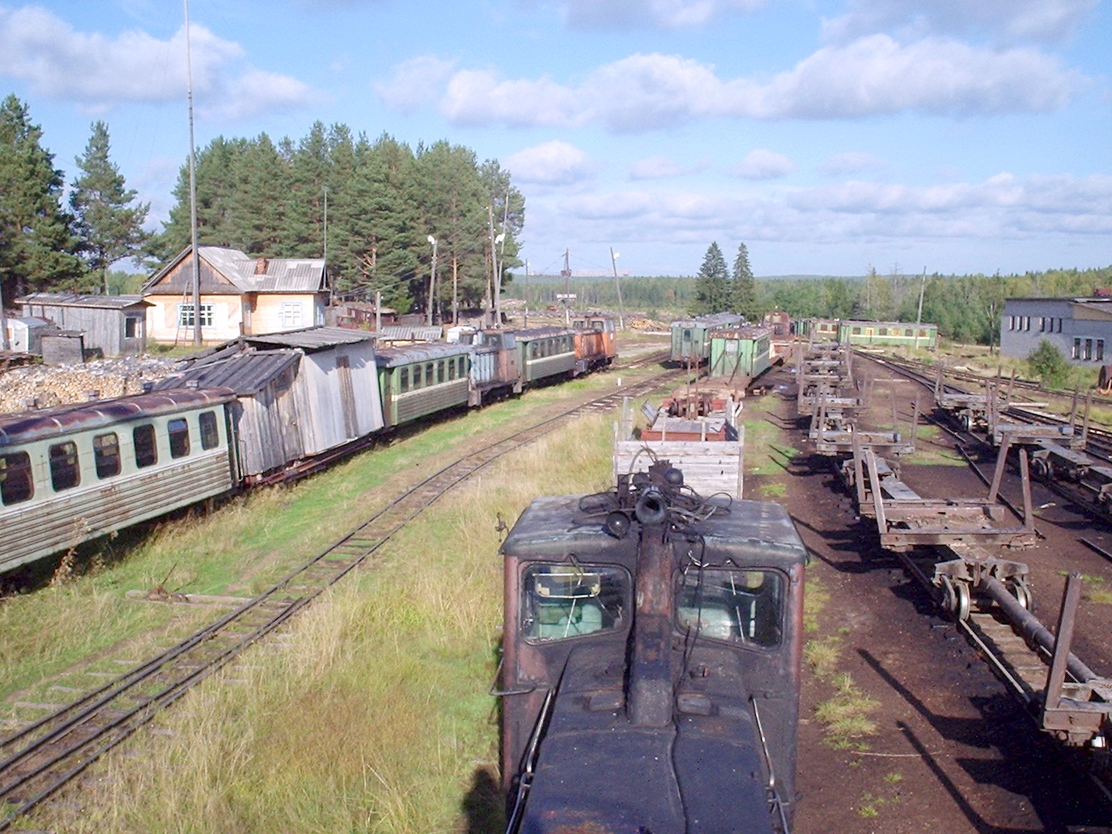 в пути станции Карпогоры-Пассажирские (видимой границы между станциями нет). Слева — отстаивающийся пассажирский