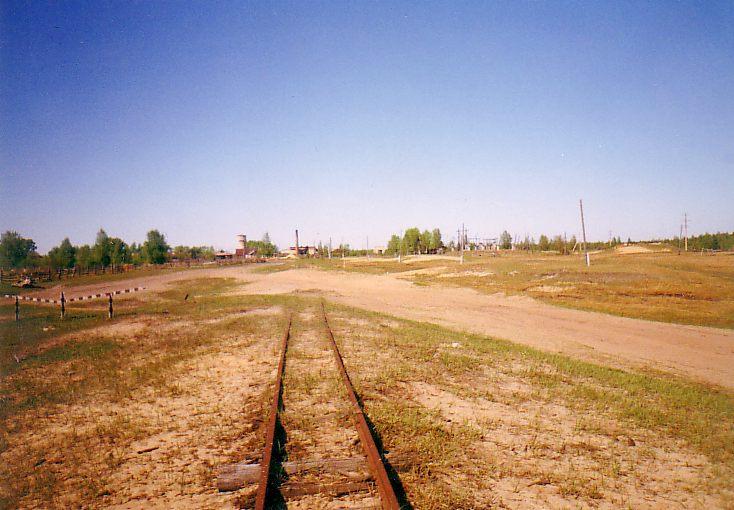 Узкоколейная железная дорога комбината «Магнезит» (город Сатка). Вид на станцию Карьерная со стороны тупика.