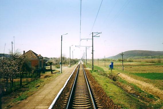 Железнодорожная линия Ужгород — Самбор. Впереди — станция Ставное.