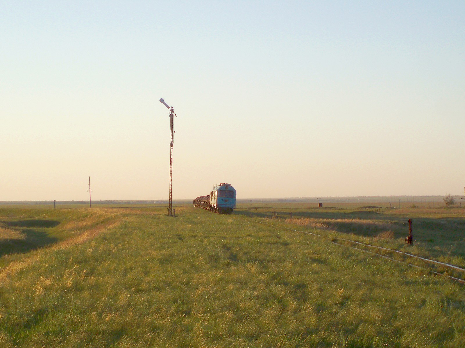 Узкоколейная железная дорога Атбасар — Шантобе. Семафор на станции Бараккуль. Вид со стороны станции Атбасар.