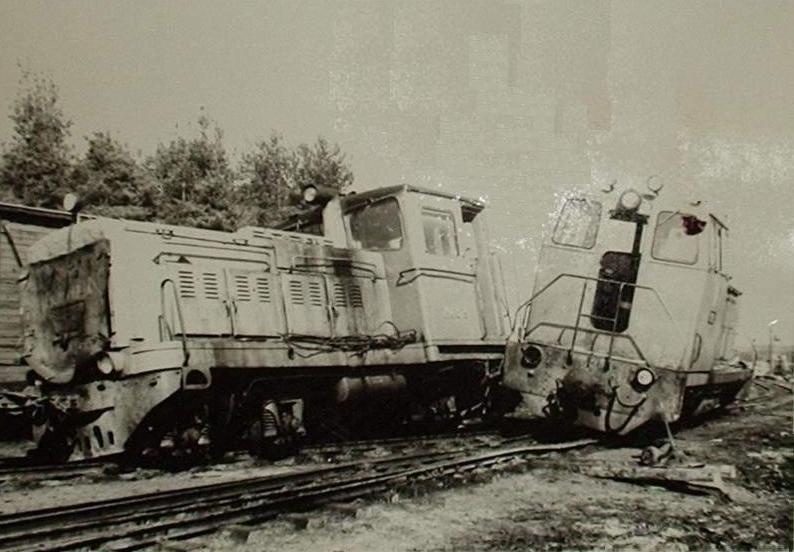 Аникинская узкоколейная железная дорога. Столкновение тепловозов на станции Таврическая. 1980-е годы (?).