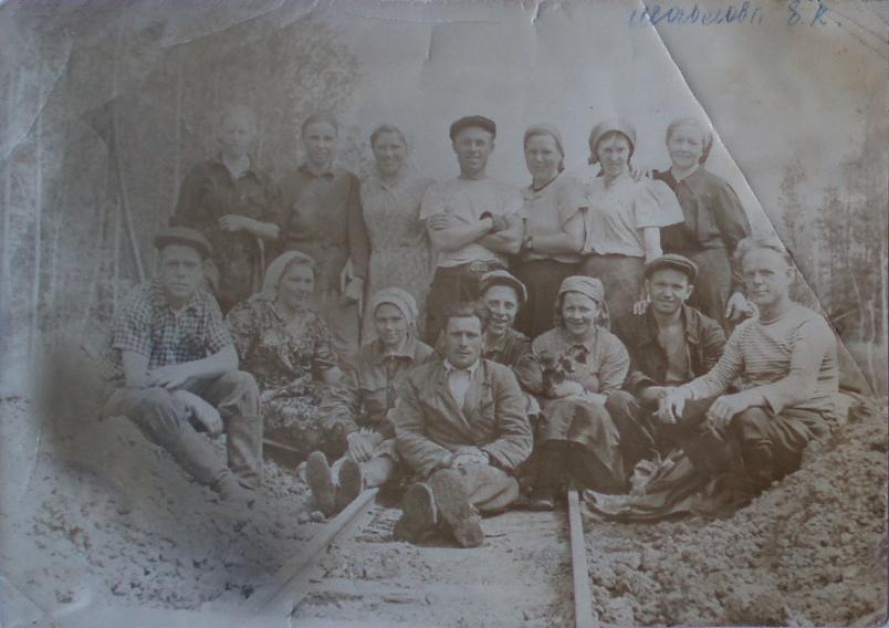 Папуловская узкоколейная железная дорога, один из верхних складов. Бригада Григорьева.