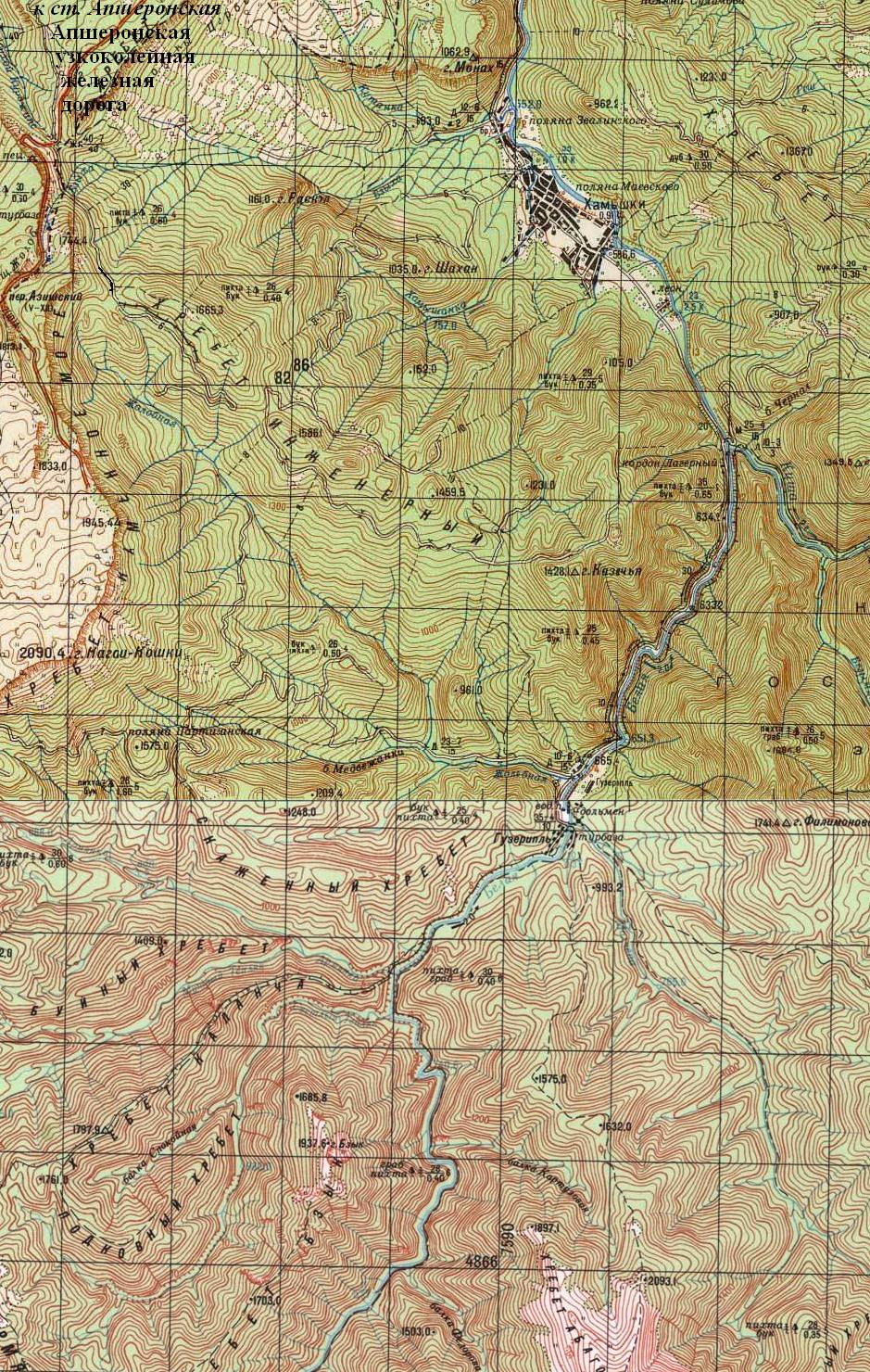 Узкоколейная железная дорога Майкопского райпромкомбината. Возможный начальный пункт — город Майкоп.