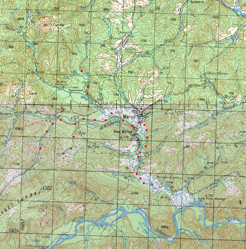 Матурская (?) узкоколейная железная дорога. Начальный пункт — село Матур, расположенное на берегах реки Матур.