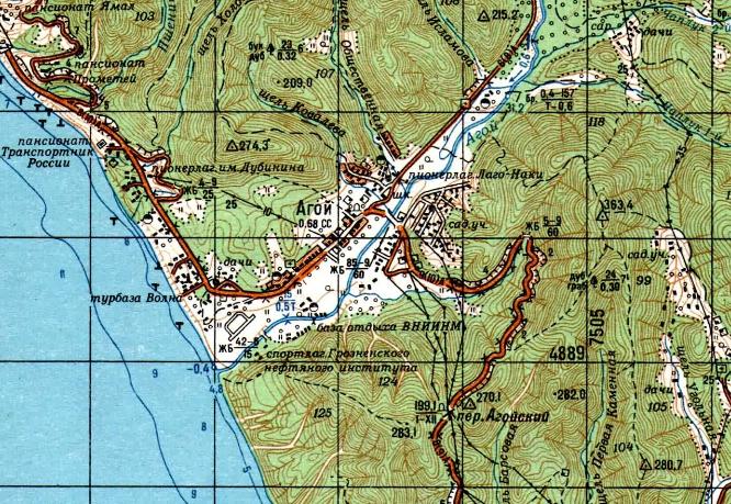 масштаба 1:50 000, изданной в 198? году. Согласно информации из книги «История гидротехники. Морские порты и водные пути России», в период работ по реконструкции морского порта Туапсе, выполнявшихся в 1910-1913 годах французской компанией, была построена узкоколейная железная дорога, соединившая карьер вблизи реки Агой с пристанью в ближайшей точке морского побережья.