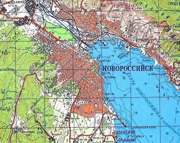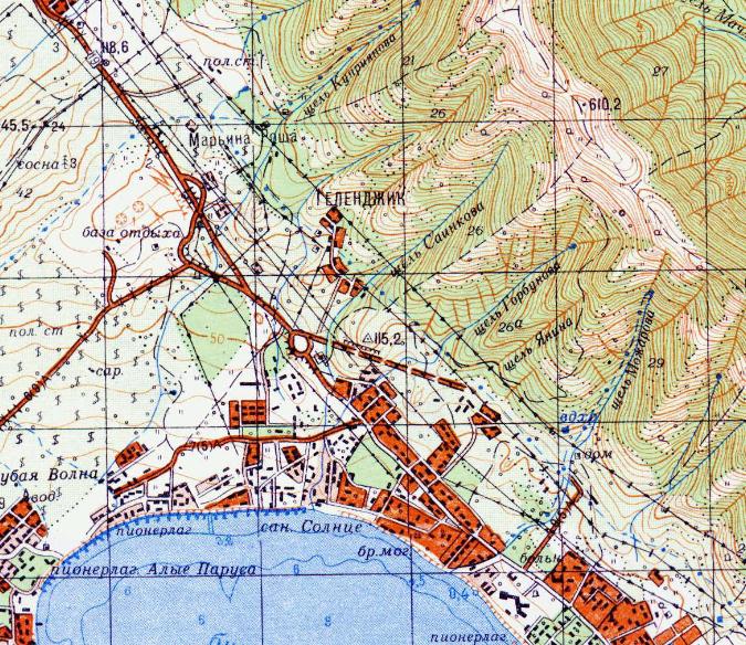 масштаба 1:50 000, изданной в 198? году. Цементный завод «Солнце» находился на северной окраине нынешнего города Геленджик, вблизи берега Геленджикской бухты.