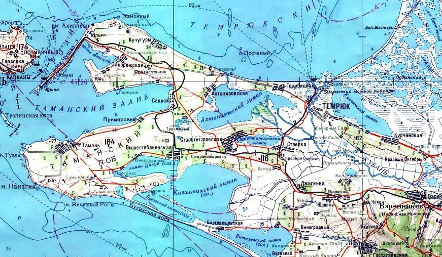 Главная линия узкоколейной железной дороги пролегала по направлению Варенниковская — Старотитаровская — коса Чушка. Имелись и другие линии (на оперативной карте германской армии показана линия к мысу Тузла).