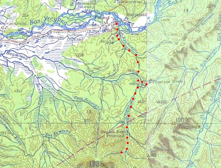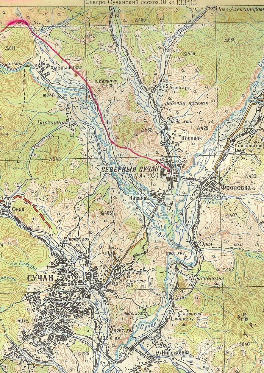 Сучанская (?) узкоколейная железная дорога. Начальный пункт — город Партизанск (до 1972 года Сучан).