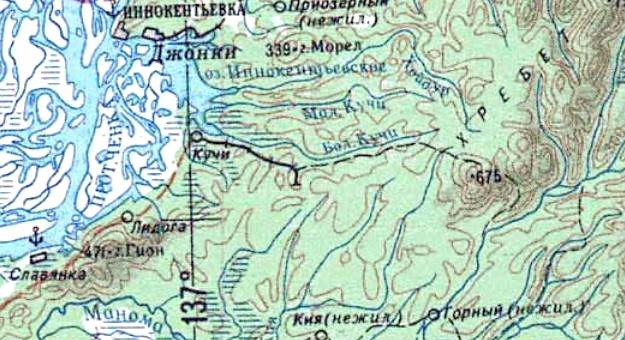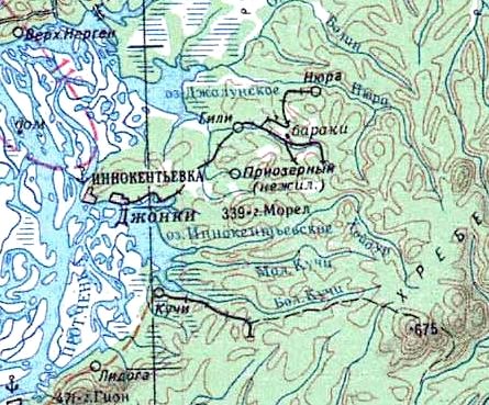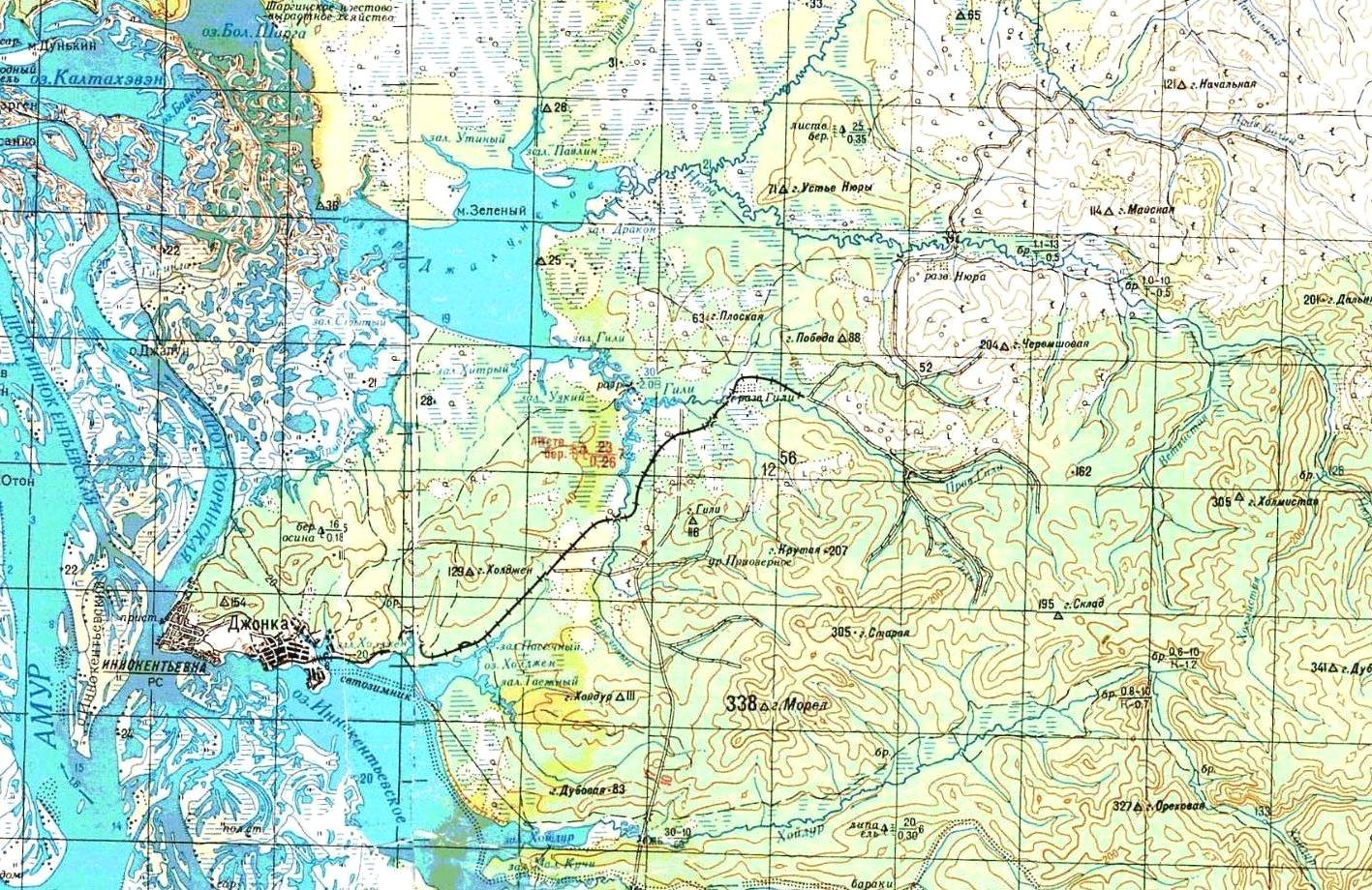 Иннокентьевская (?) узкоколейная железная дорога. Начальный пункт — посёлок Джонка, расположенный вблизи правого берега реки Амур.
