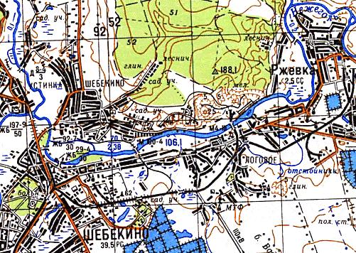 масштаба 1:300 000, изданной в Германии в 1943 году. Сахарный завод в слободе Шебекина (ныне город Шебекино) был основан в XIX веке. В начале XX века по инициативе владельца завода А. Ребиндера был построен рельсовый путь узкой колеи, на котором использовалась конная тяга.