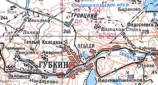 масштаба 1:200 000, изданной в 1994 году. В некоторых топографических картах обозначена узкоколейная железная дорога, пролегающая по направлению станция Губкин (на железнодорожной линии Старый Оскол — Сараевка) — посёлок Троицкий.