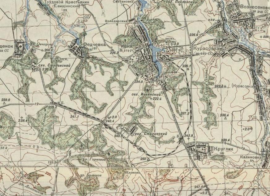 изданной в ориентировочно в 1941 году. Ивнянский сахарный завод основан в 1853 году. При Советской власти — Ивнянский сахарный завод имени Ленина. В период от 2005 до 2016 года завод был закрыт, разграблен и разрушен.
