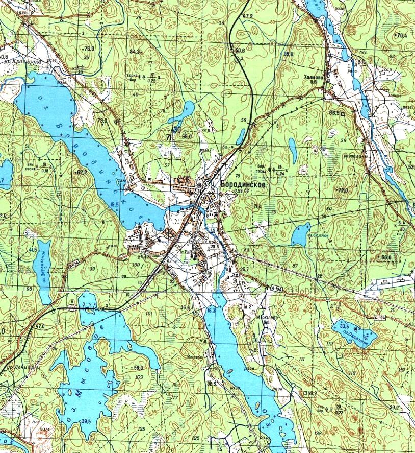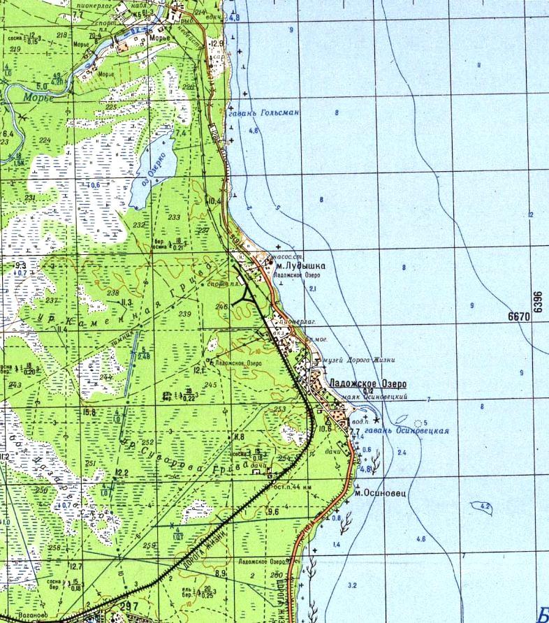 карте масштаба 1:50 000, изданной в 1980 году. В городе Приозерске (исторические названия — Корела, Кексгольм, в 1918-1940 годах Кякисалми) действовала узкоколейная железная дорога, предназначенная для межцеховых грузовых перевозок в пределах территории целлюлозно-бумажного комбината.