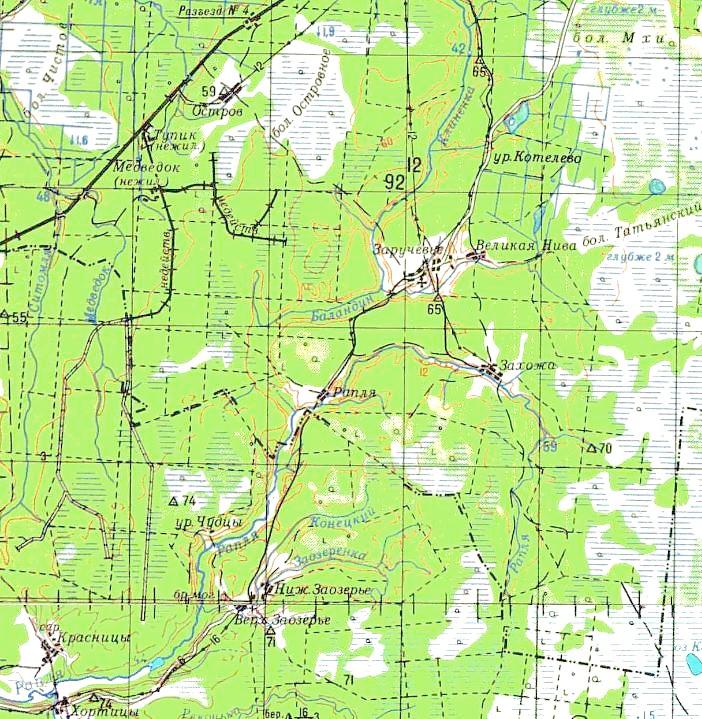 (северная часть), 1973 году (южная часть). Узкоколейная железная дорога в эти годы действовала, на карте