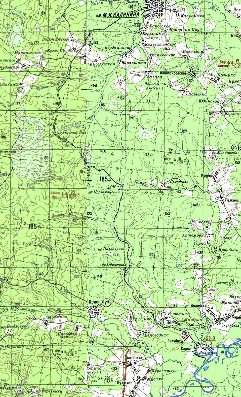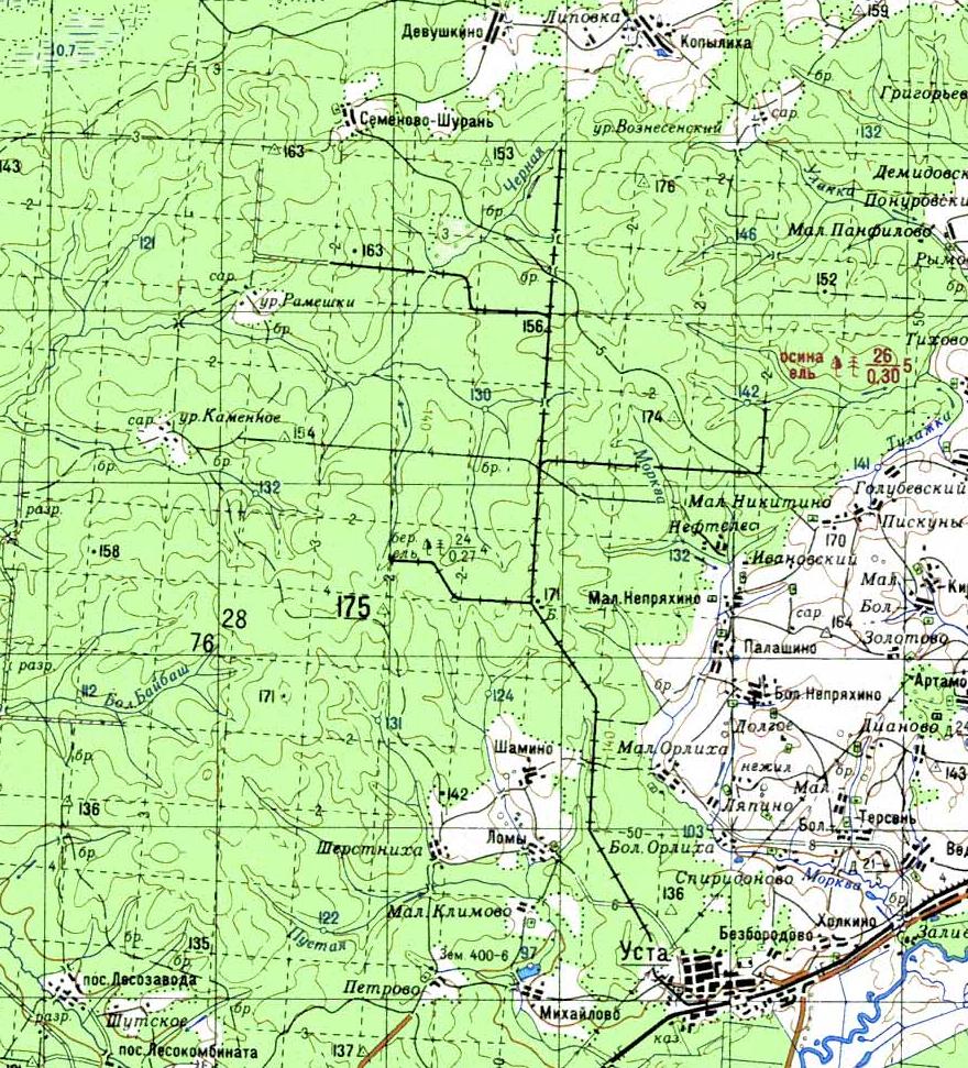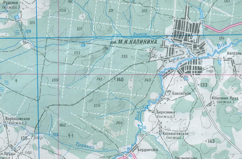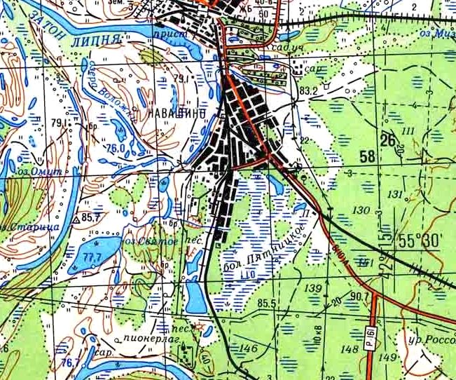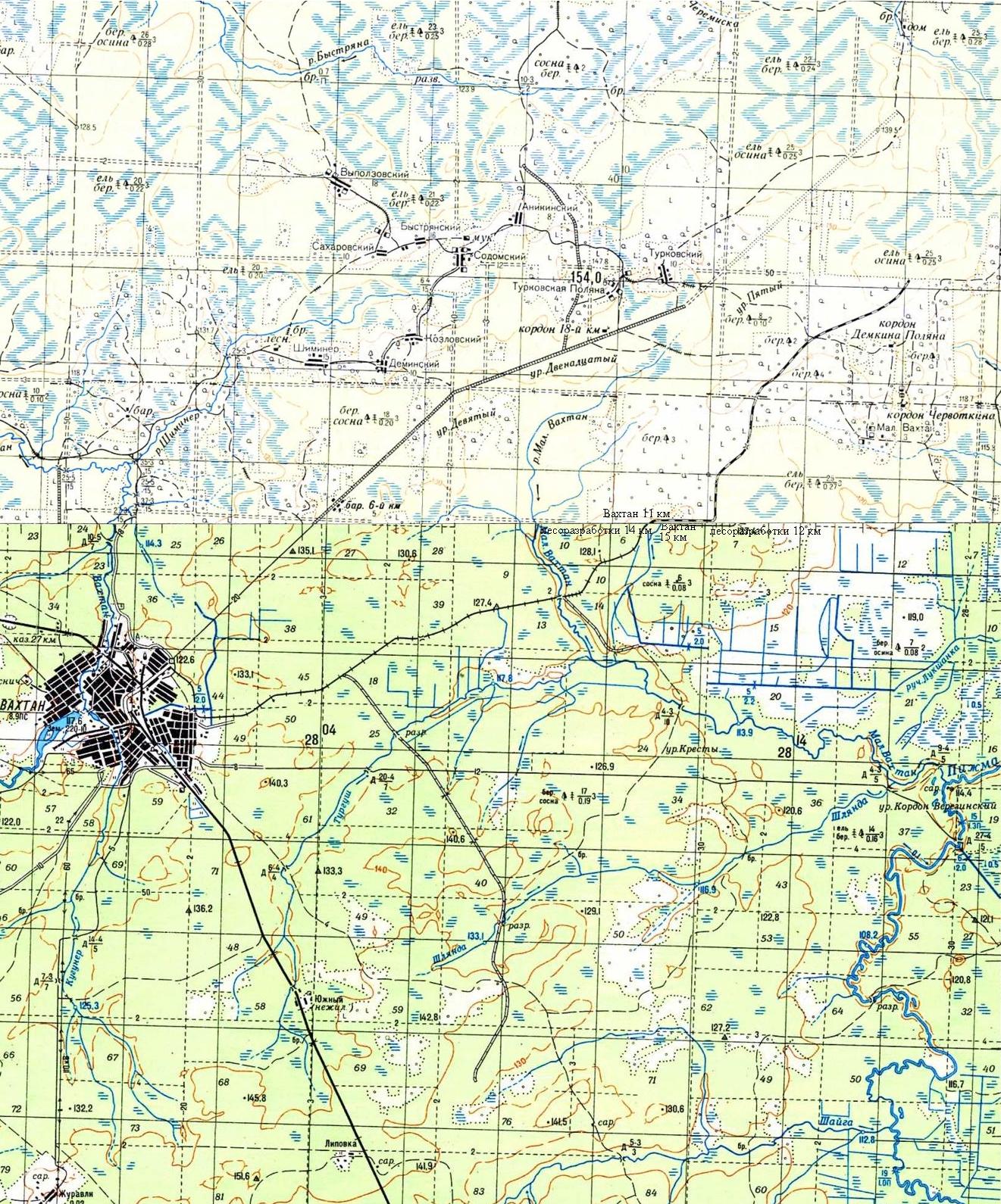 топографической карте масштаба 1:100 000, изданной в 1980 году.