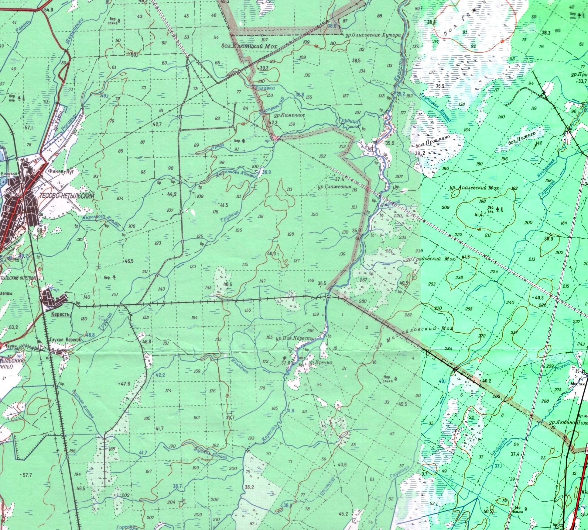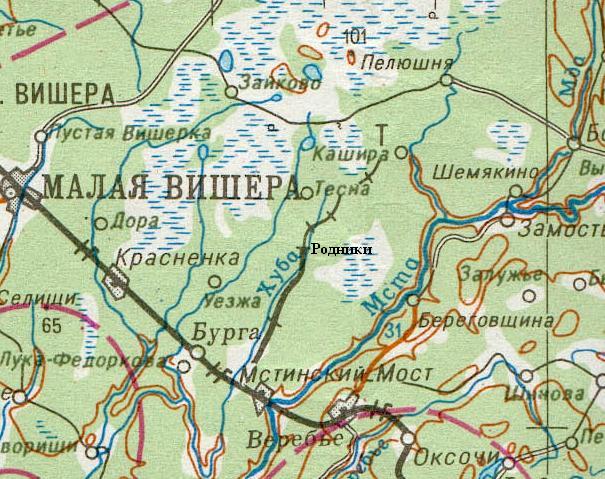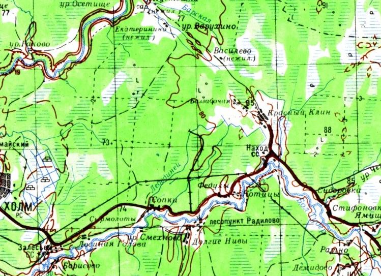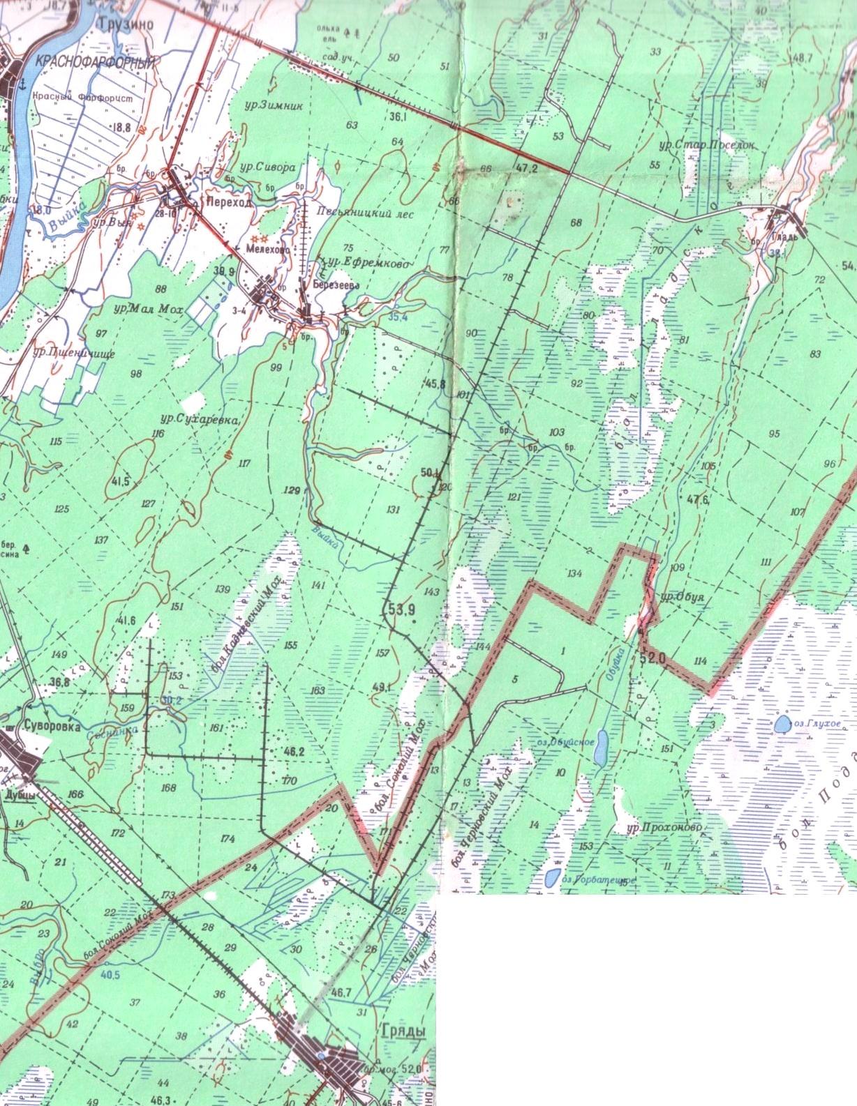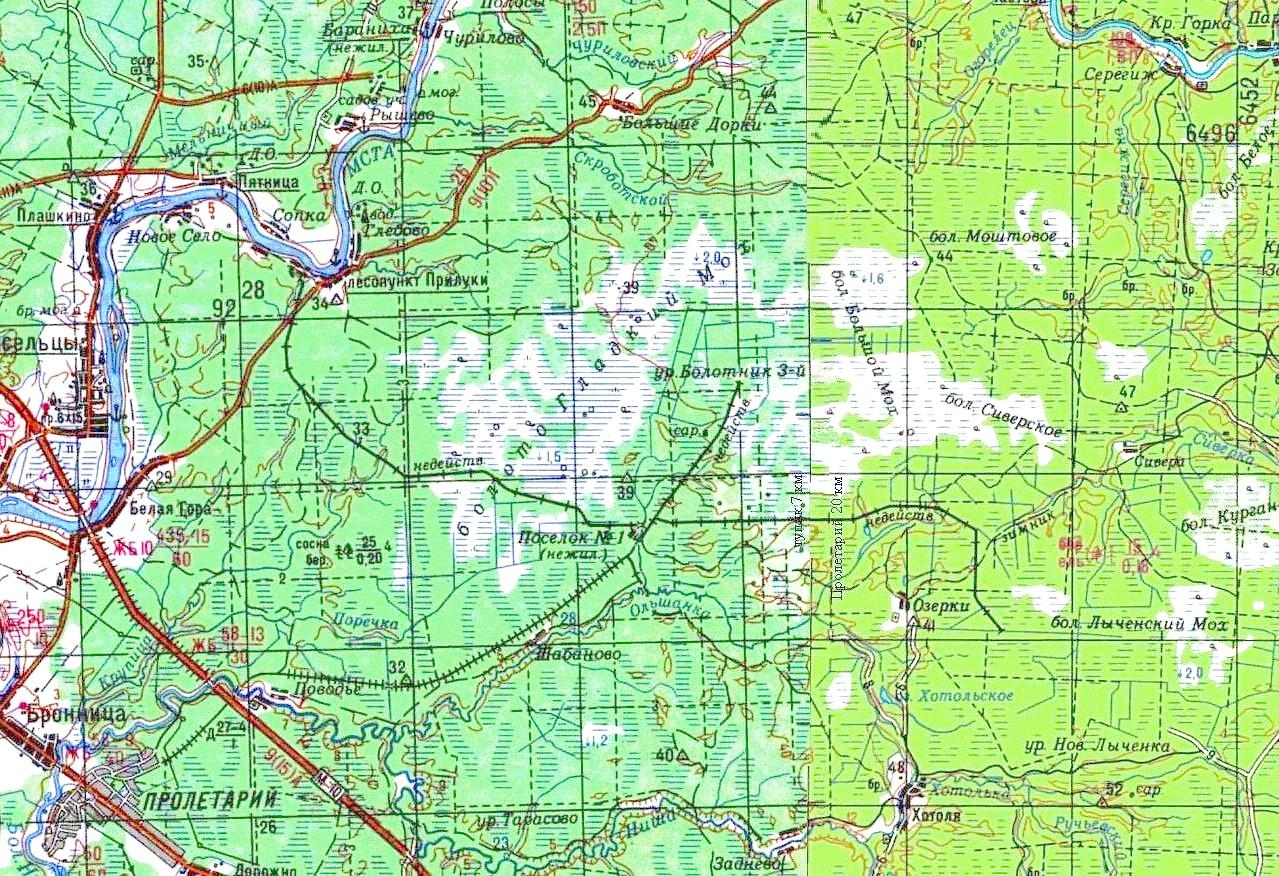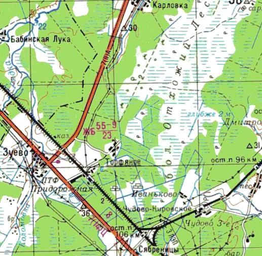 масштаба 1:200 000, изданной в 1992 году. Спустя много десятилетий после уничтожения первой («довоенной») узкоколейной железной дороги, на торфомассиве в окрестностях деревни Грязные Харчевни (Лесная) начала строиться вторая торфовозная узкоколейная железная дорога.