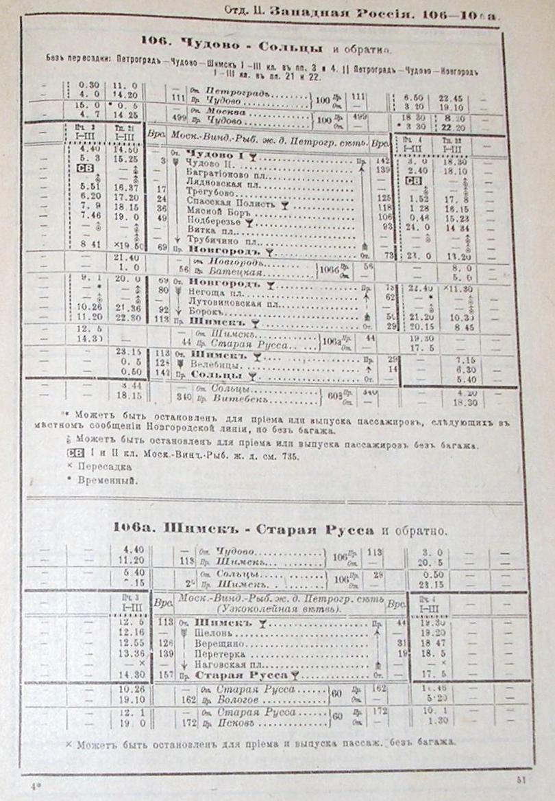 Расписание движения поездов с мая 1917 года (из «Официального указателя