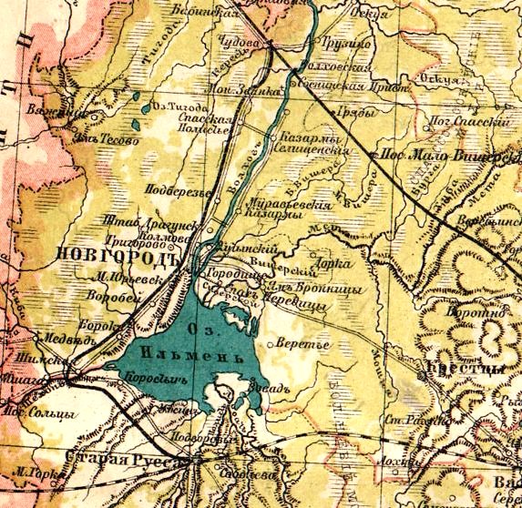Узкоколейная железная дорога на карте Новгородской губернии из «Энциклопедического