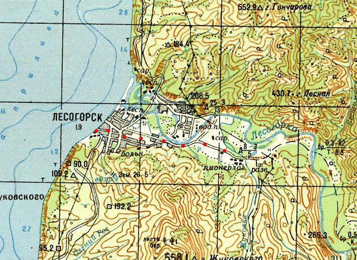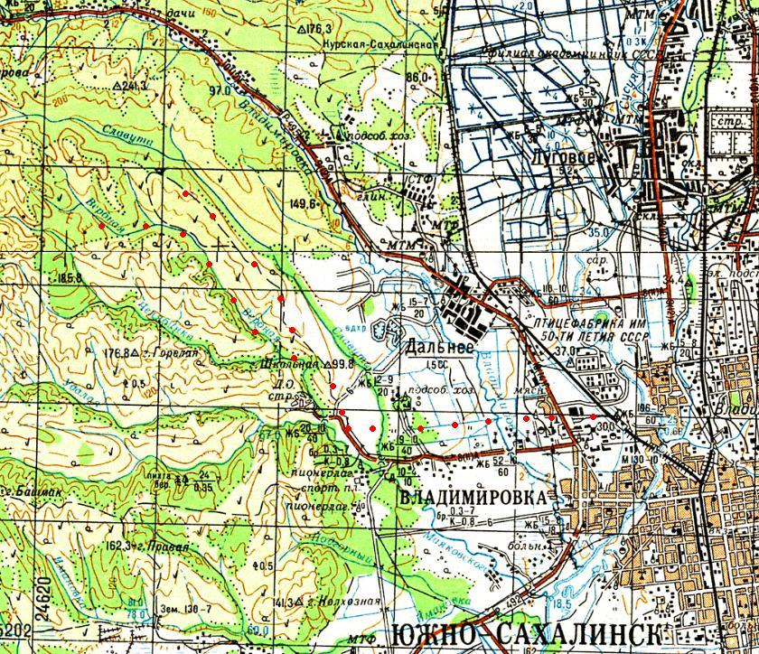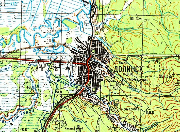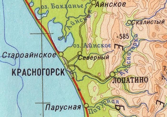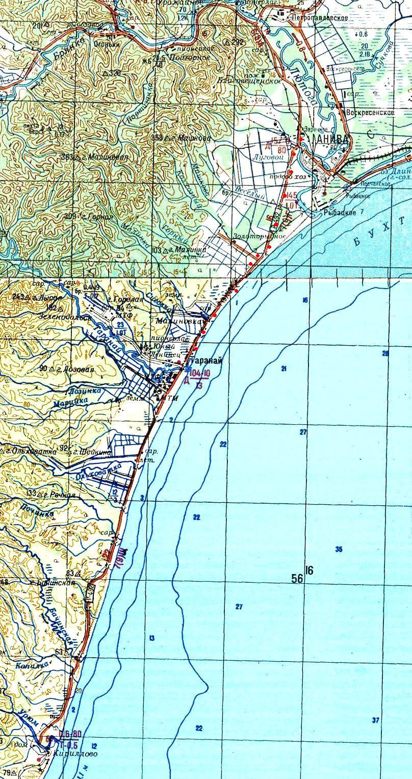 масштаба 1:100 000, изданной в 1986 году. Город Александровск является одним из первых русских населённых пунктов на Сахалине (основан в 1862 году, с 1884 года — административный центр Сахалина).