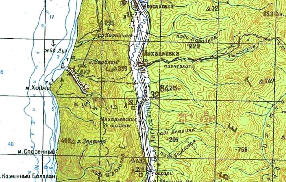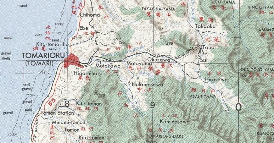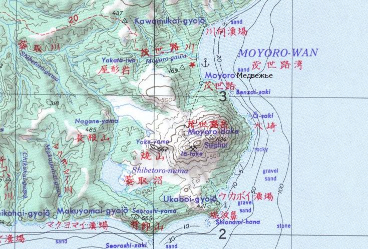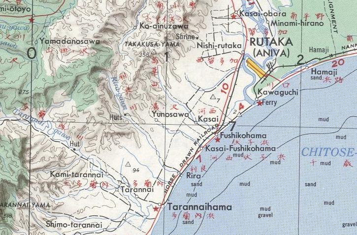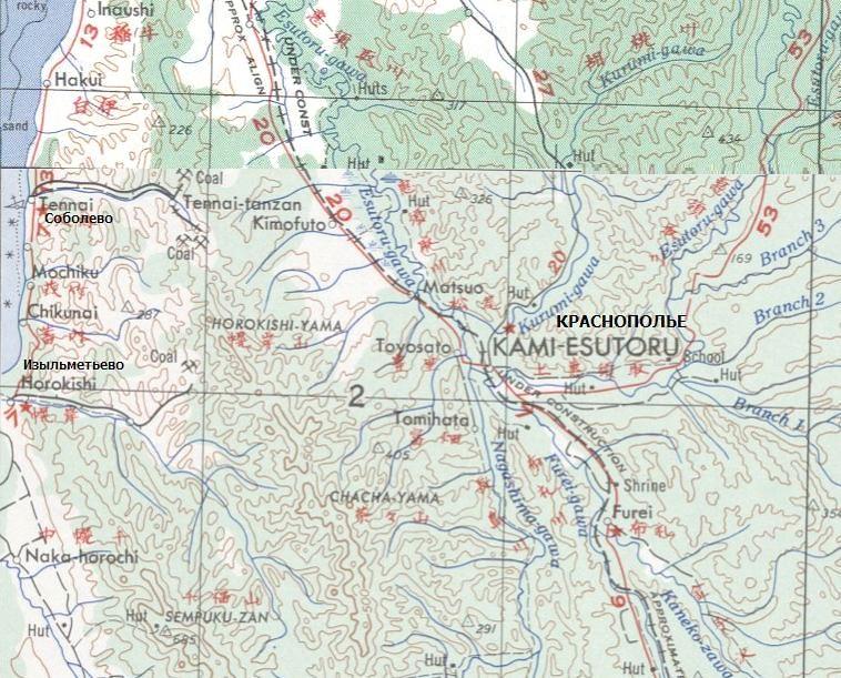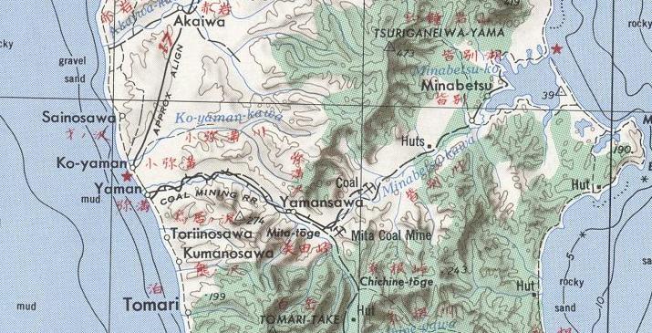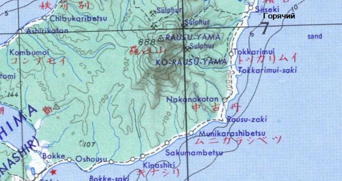 масштаба 1:250 000, изданной в США в 1954 году. В районе горы Раусу-яма до 1945 года разрабатывались месторождения сульфатов. По неподтверждённым данным, действовала шахтная узкоколейная железная дорога.