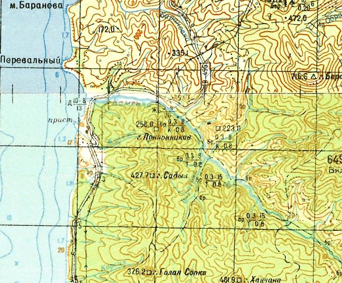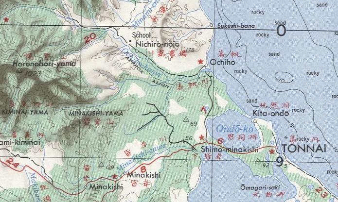 масштаба 1:100 000, изданной в 1986 году. Посёлок Амбецу являлся самым северным населённом пунктом Карафуто (японского Сахалина), находился вблизи линии японско-советской границы.