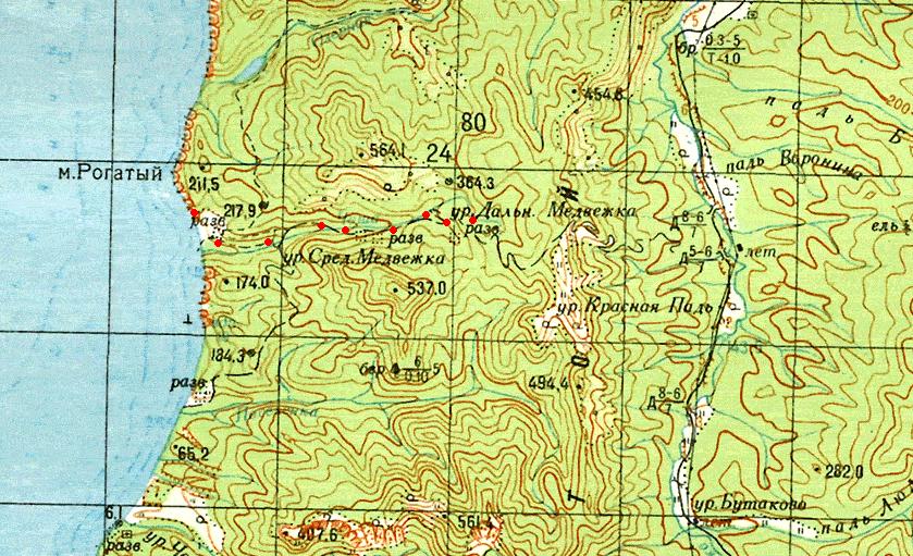 изданной в 1986 году (нанесена условно). Добыча угля в районе мыса Рогатый началась до революции 1917 года. В 1927 году угольный рудник был восстановлен и получил название Октябрьский — в честь 10-летия Октябрьской революции.