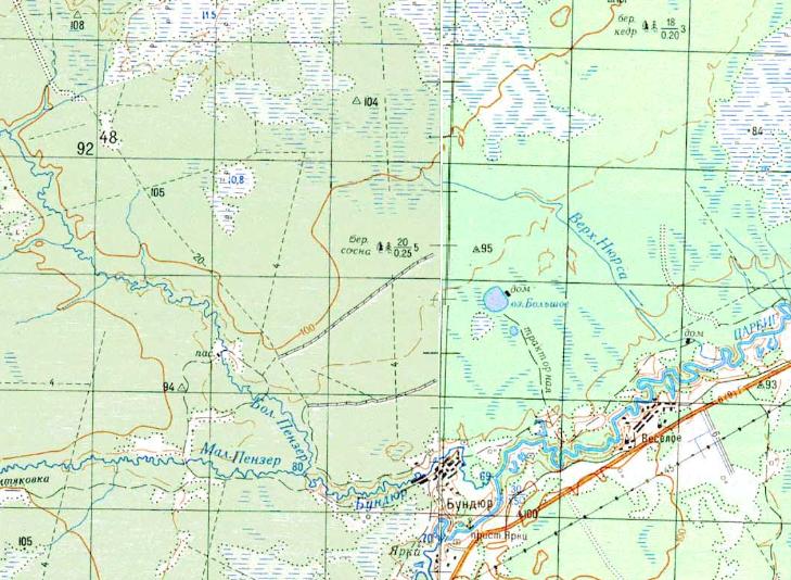 Нюрсинская и Бундюрская узкоколейные железные дороги на топографической карте
