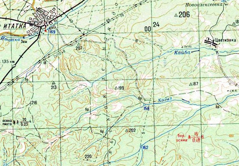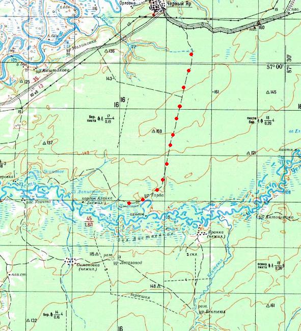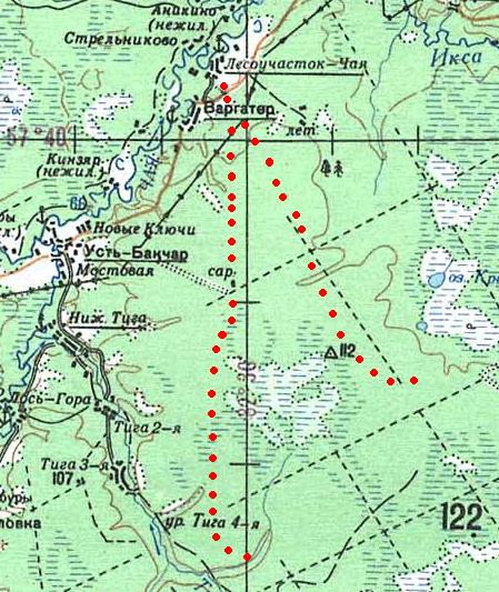 Итатская (?) узкоколейная железная дорога. Начальный пункт — посёлок Итатка, расположенный вблизи станции Итатка на железнодорожной линии Тайга — Белый Яр.