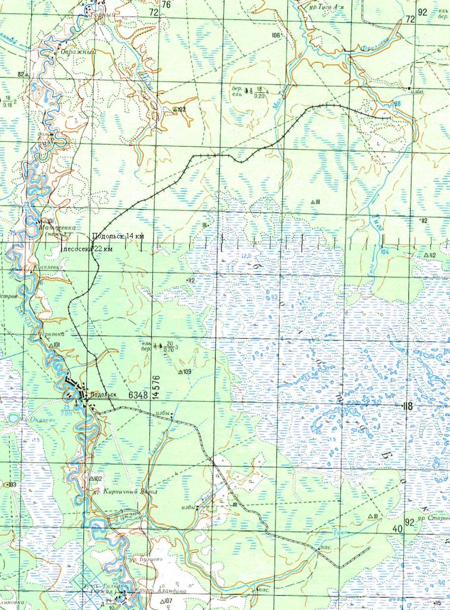 Сайгинская и Уткинская узкоколейные железные дороги на топографической карте