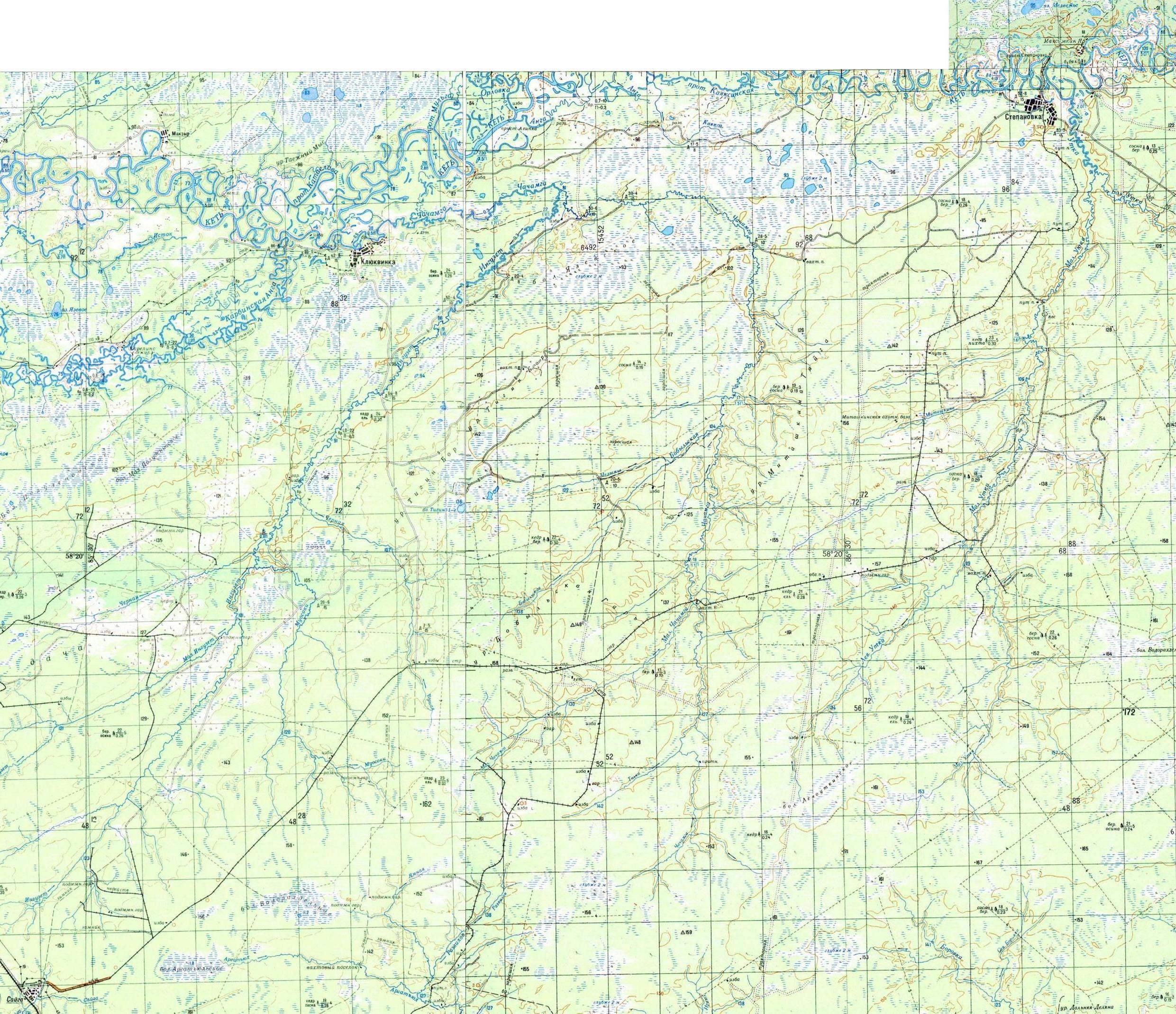 масштаба 1:1 000 000, изданной в 1987 году. Сайгинская и Уткинская узкоколейные железные дороги на топографической карте масштаба 1:200 000, изданной в 1988 году