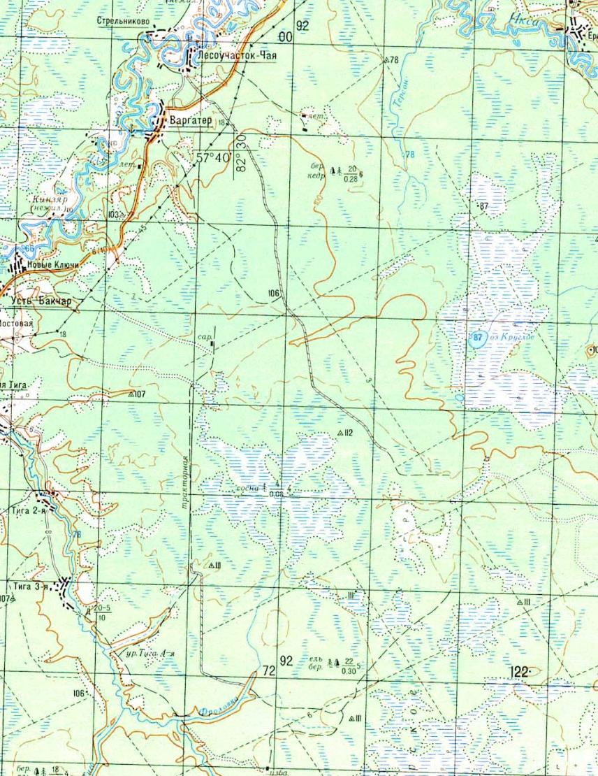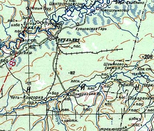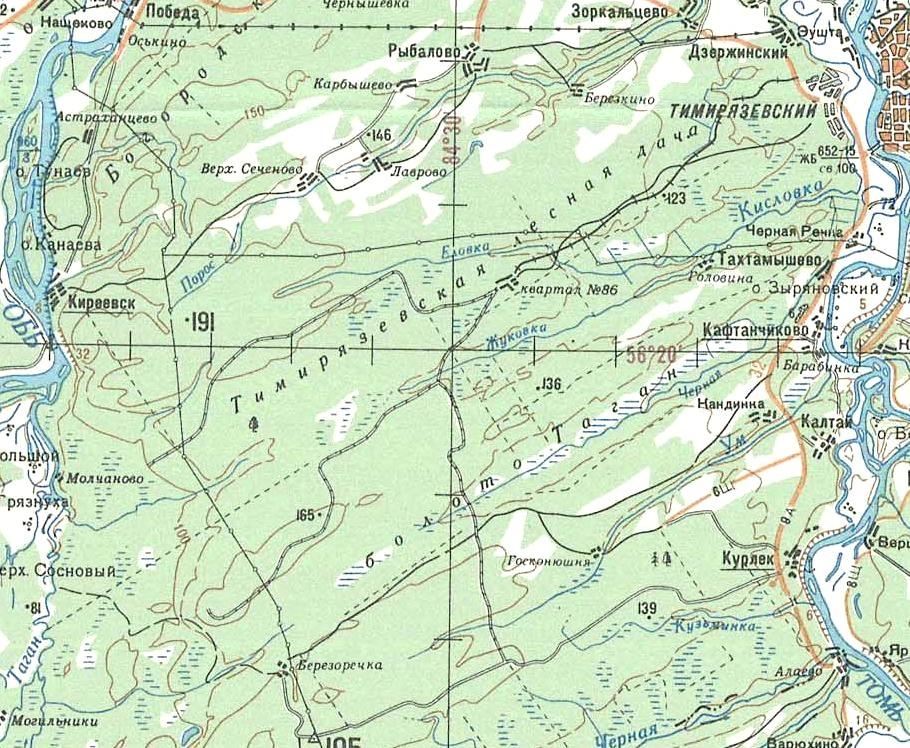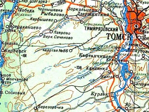 карте масштаба 1:200 000, изданной в 1991 году. Вблизи села Кафтанчиково, расположенного в окрестностях города Томска, велась добыча торфа. Действовала узкоколейная железная дорога (предположительно, она соединяла торфомассив с пристанью на левом берегу реки Томь, расположенной напротив города Томска).