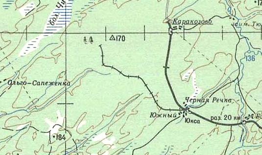 масштаба 1:500 000, изданной в 1986 году. Узкоколейная железная дорога на топографической карте масштаба 1:200 000, изданной в 1988 году