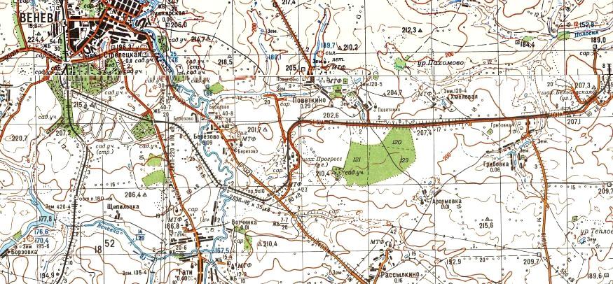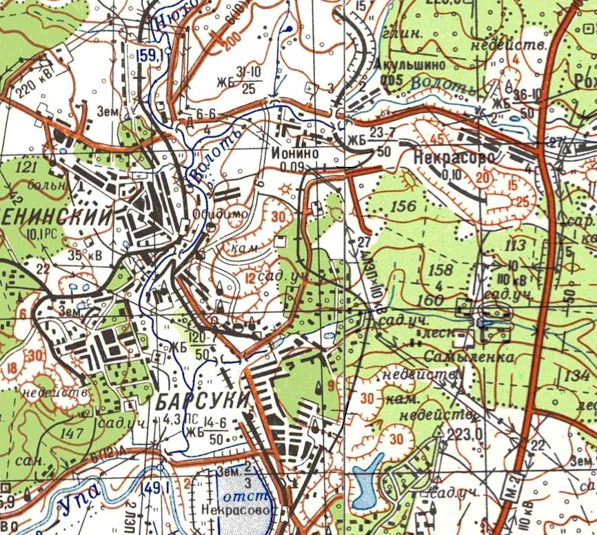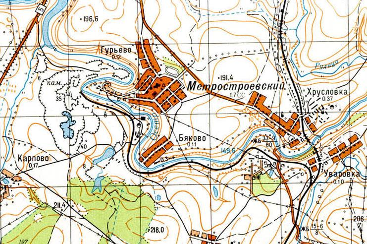 масштаба 1:50 000, изданной в 1983 году (узкоколейная