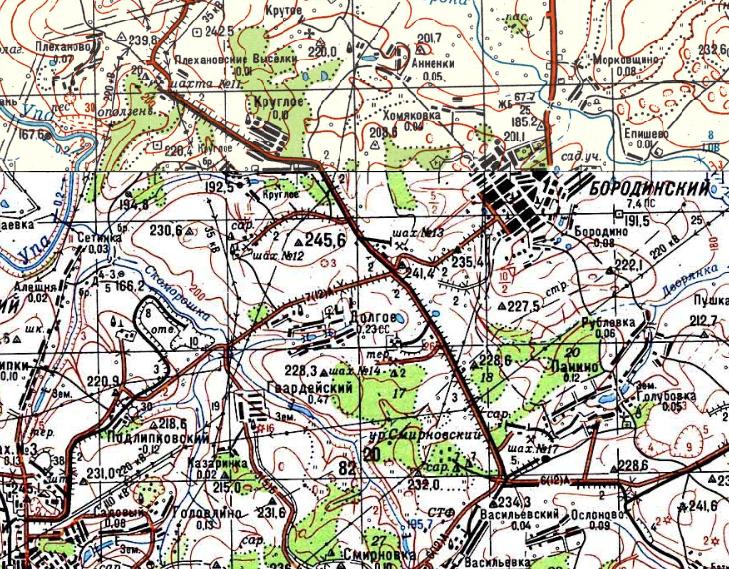 масштаба 1:100 000, изданной в 1994 году. Согласно топографической карте масштаба 1:50 000, изданной в 1991 году, существовала узкоколейная железная дорога от шахты №12 (окрестности посёлка Бородинский) до железнодорожной линии широкой колеи Васильевка — шахта №11.