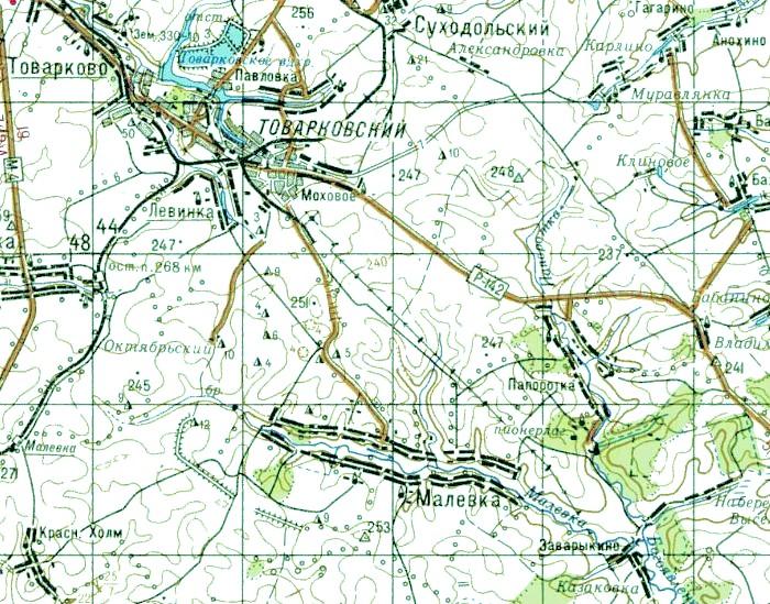 Узкоколейная железная дорога Товарково — Малевка. Начальный пункт — станция Товарково, расположенная на железнодорожной линии Узловая — Волово.