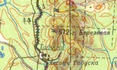 Район возможного местонахождения узкоколейной железной дороги на топографической