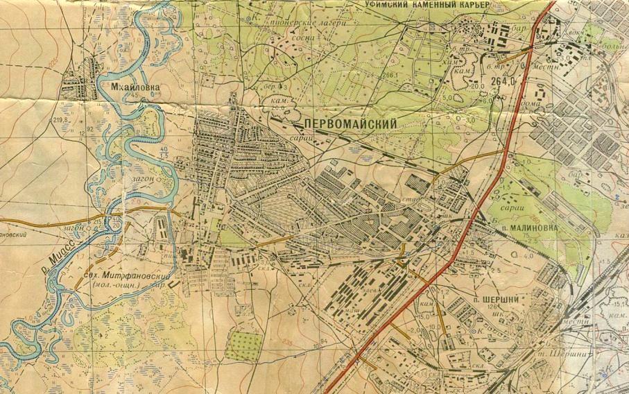 Узкоколейная железная дорога в посёлке Первомайский. Местонахождение — окрестности посёлка Первомайский (юго-западная часть города Челябинска).
