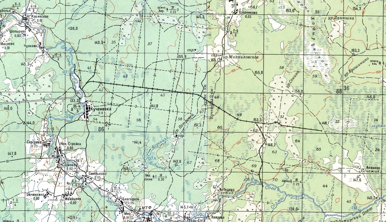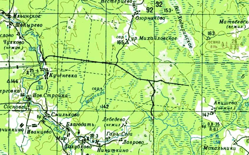 масштаба 1:100 000, изданной в 1983 году. По информации от А. Мерщикова, в течение некоторого времени (ориентировочно в 1950-х годах) существовала лесовозная узкоколейная железная дорога на Неверковском участке Борисоглебского леспромхоза.
