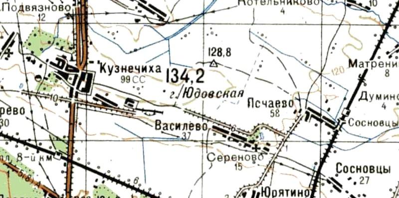 Участок Юрятино — Сереново — Кузнечиха мне хорошо известен. По бывшей насыпи проложена асфальтовая дорога. Всё прекрасно читается на местности.