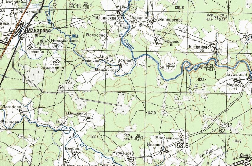 Макаровская (?) узкоколейная железная дорога. Начальный пункт — посёлок Макарово, расположенный у станции Макарово на железнодорожной линии Данилов — Паприха.