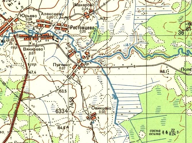 масштаба 1:50 000, изданной в 1988 году. По информации от В. Миронова, в селе Путчино и его окрестностях действовала узкоколейная железная дорога. Узкоколейная железная дорога, предположительно, обслуживала Путчинский льнозавод, открытый в 1933 году. Имелись паровозы. Никаких иных сведений не известно.