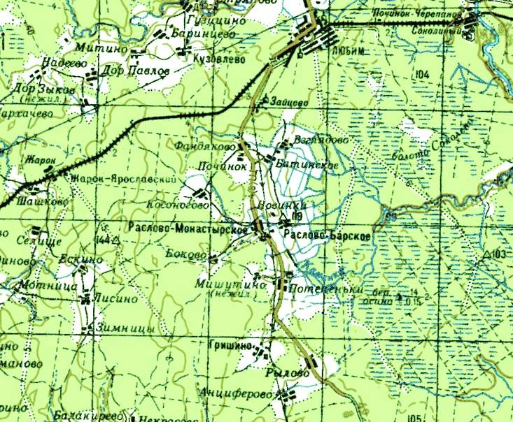 масштаба 1:200 000, изданной в 1981 году. Узкоколейная железная дорога была лесовозной, относилась к Расловскому участку Любимского леспромхоза. Данная информация получена от А. Мерщикова.