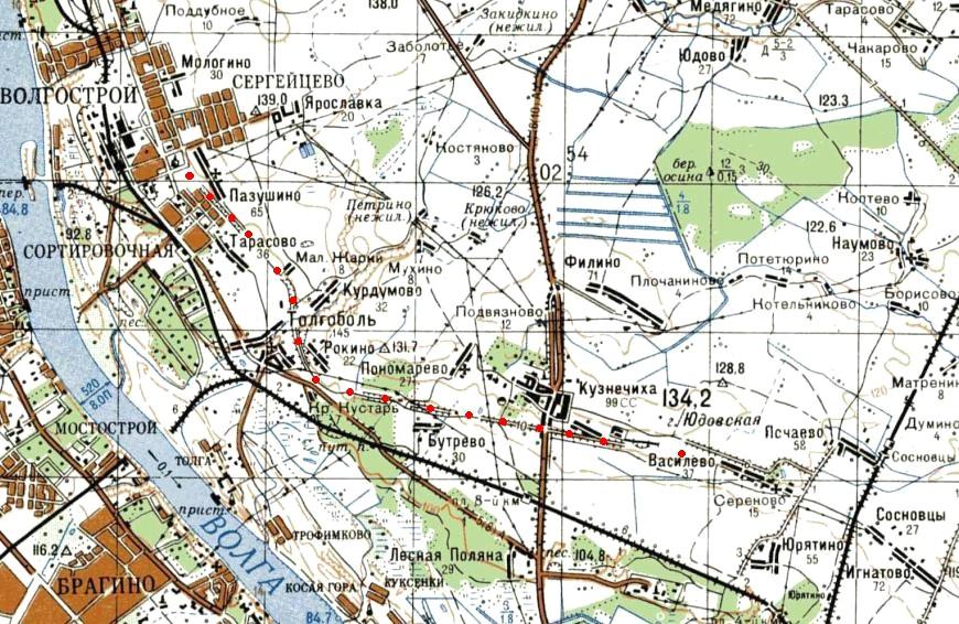 масштаба 1:100 000, изданной в 1975 году. Факт существования узкоколейной железной дороги по направлению Филино — Кузнечиха — Толгоболь — Пазушино — Волгострой представляется спорным. Возможно, узкоколейная железная дорога была построена в начале 1930-х годов, когда на реке Волге немногим выше Ярославля предполагалось строительство плотины крупной гидроэлектростанции. В 1935 году место строительство ГЭС было перенесено из Ярославля в Рыбинск. О неосуществлённом проекте строительства ГЭС у Ярославля напоминает название посёлка Волгострой.